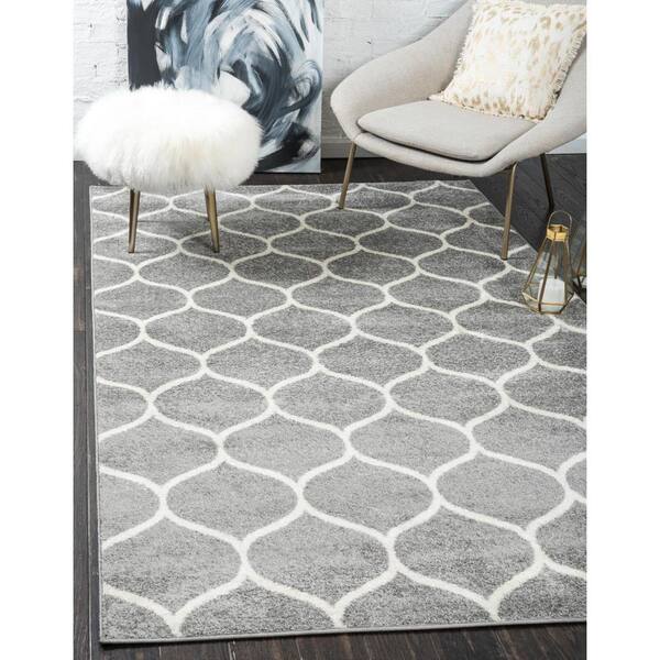 Trellis Frieze Rounded Light Gray 4' 0 x 6' 0 Area Rug