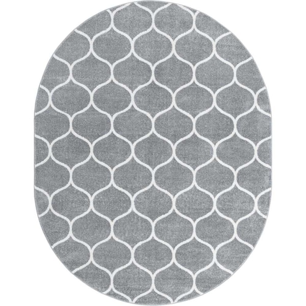 Trellis Frieze Rounded Light Gray 7 ft. 10 in. x 10 ft. Area Rug