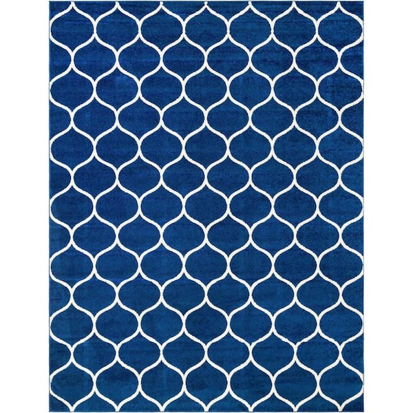 Trellis Frieze Rounded Navy Blue 10 ft. x 13 ft. Area Rug