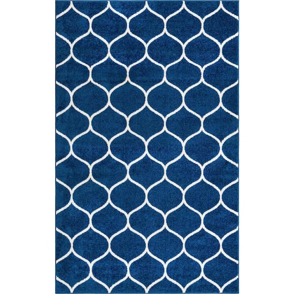 Trellis Frieze Rounded Navy Blue 5' 0 x 8' 0 Area Rug