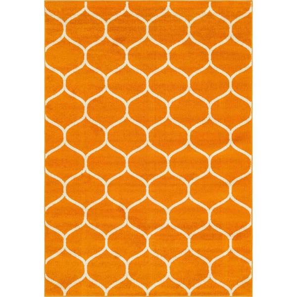 Trellis Frieze Rounded Orange 7 ft. x 10 ft. Area Rug