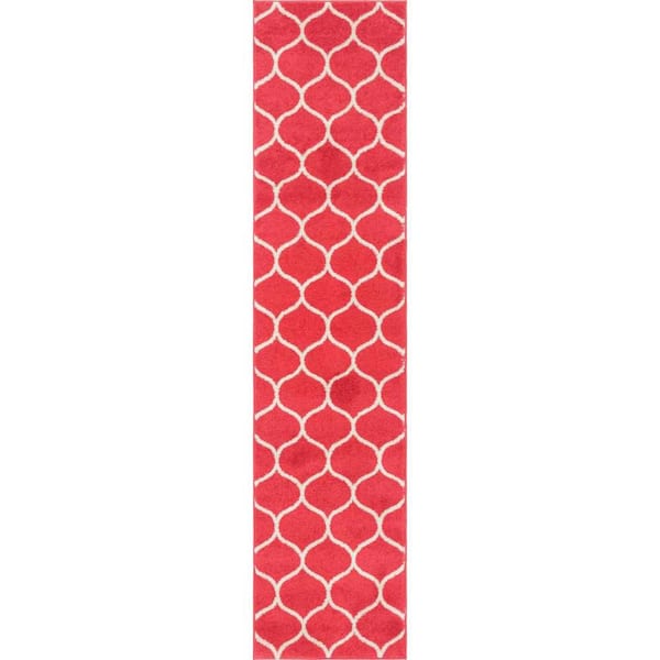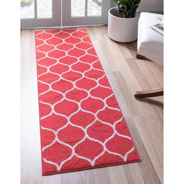 Trellis Frieze Rounded Pink 2 ft. x 8 ft. 8 in. Area Rug