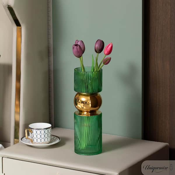 12 in. Decorative Green Tall Glass Vase - Modern Minimalist Decor for Parties, and Special Events.