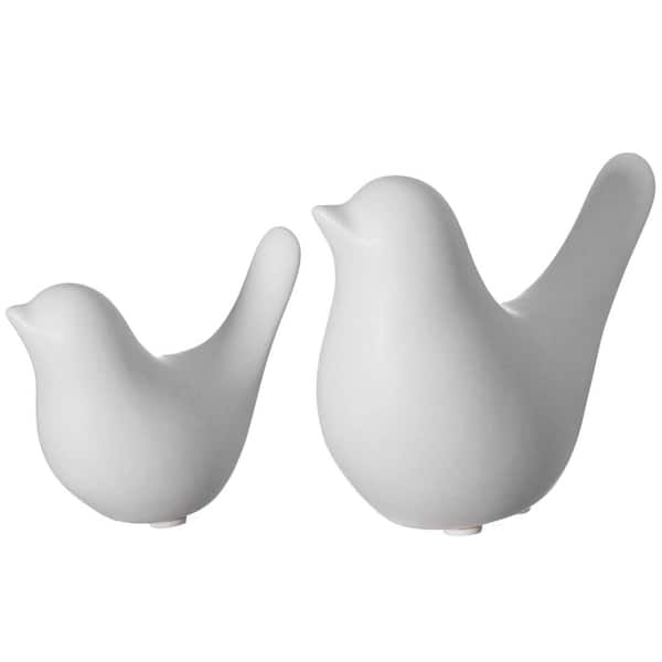Set of 2 White Bird Ceramic Sculptures 2.4 in. Height, 5 in. Width