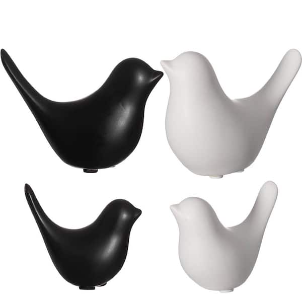Set of 4 White 4 in. high x 3 in. Bird Ceramic Statues Gift and Decorative Accents for Living Room Bedroom Office
