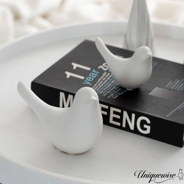 White 3.9 in. High Bird Ceramic Sculpture Small