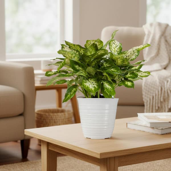 12 in. to 16 in. Tall Dumb Cane Plant Dieffenbachia in 6 in. White Decor Pot