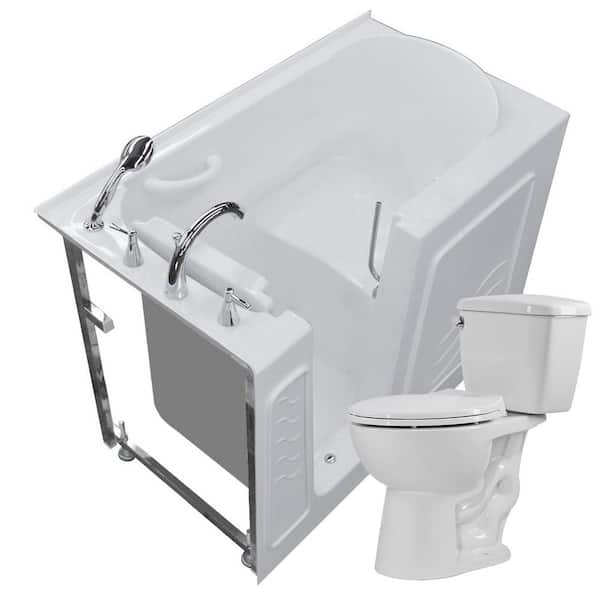 52.8 in. Walk-In Non-Whirlpool Bathtub in White with 1.28 GPF Single Flush Toilet