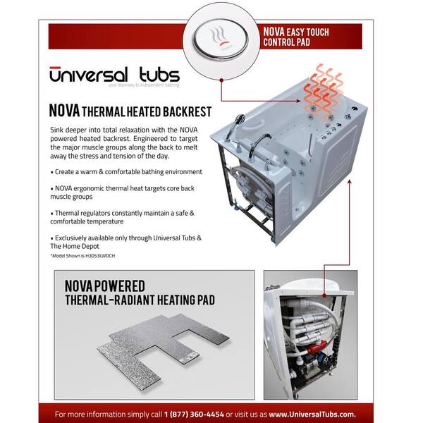 Nova Heated 4.4 ft. Walk-In Air Jetted Tub in Biscuit with Chrome Trim