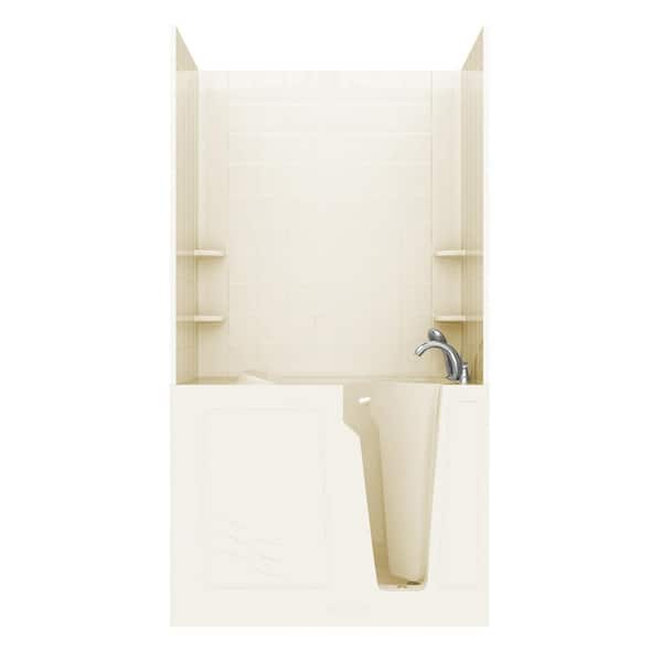 Rampart 4.4 ft. Walk-in Whirlpool Bathtub with 6 in. Tile Easy Up Adhesive Wall Surround in Biscuit