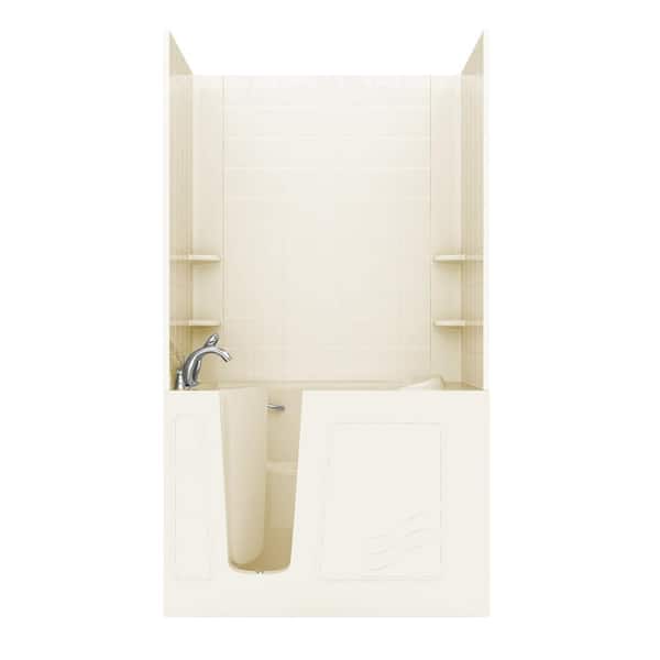 Rampart 4.5 ft. Walk-in Air Bathtub with 6 in. Tile Easy Up Adhesive Wall Surround in Biscuit