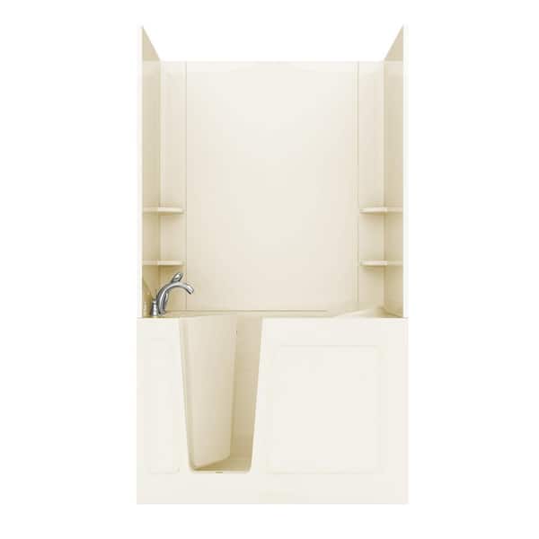 Rampart 4.5 ft. Walk-in Whirlpool and Air Bathtub with Flat Easy Up Adhesive Wall Surround in Biscuit