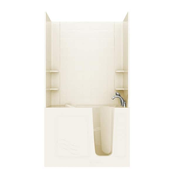 Rampart Nova Heated 4.5 ft. Walk-in Whirlpool Bathtub with 6 in. Tile Easy Up Adhesive Wall Surround in Biscuit
