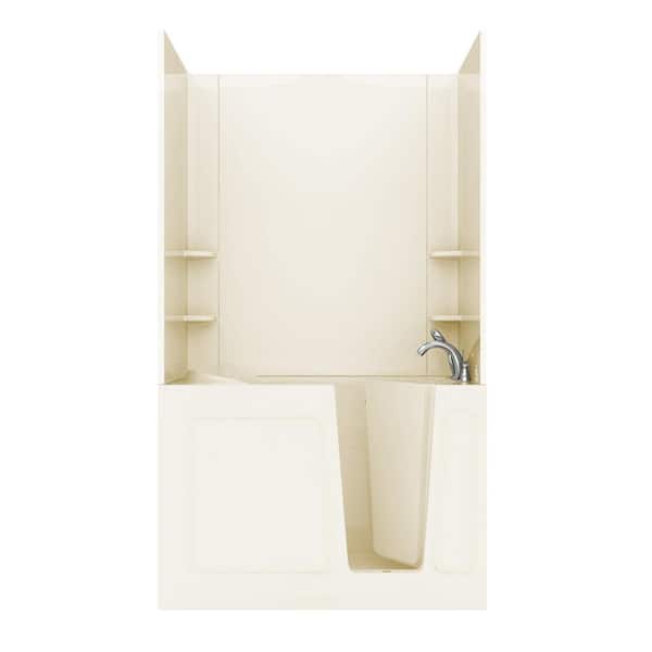 Rampart Nova Heated 4.5 ft. Walk-in Whirlpool and Air Bathtub with Flat Easy Up Adhesive Wall Surround in Biscuit