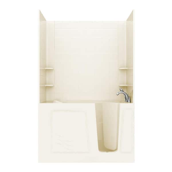 Rampart Nova Heated 5 ft. Walk-in Air Bathtub with 6 in. Tile Easy Up Adhesive Wall Surround in Biscuit