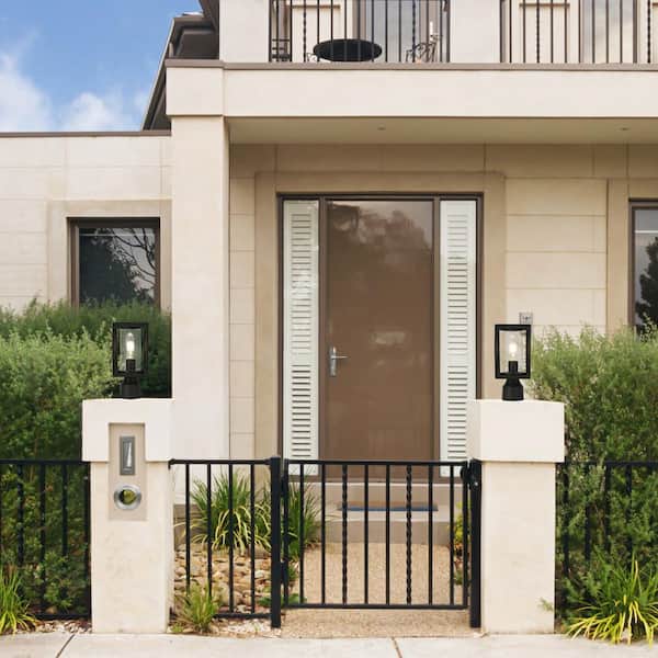 1-Light Black Metal Minimalist Outdoor Weather Resistant Pier Mount Light Post Lantern with LED Seeded Glass