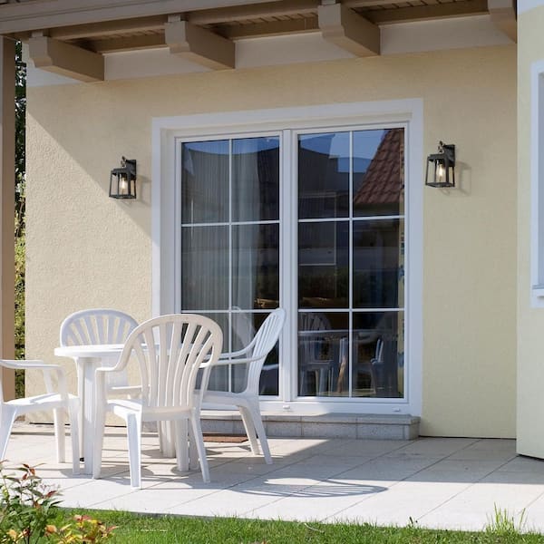 12 in. 1-Light Black Modern Outdoor Hardwired Wall Lantern Sconce with Seeded Glass Shade with No Bulbs Included