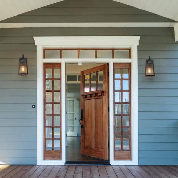 12 in. 1-Light Textured Black Outdoor Light Wall Sconce with Clear Seeded Glass (1-Pack)