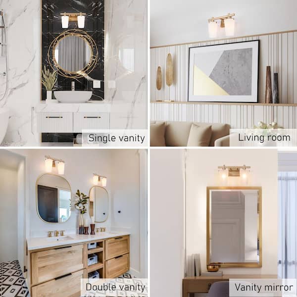 2-Light Modern Gold Linear Bathroom Wall Sconce with Frosted Glass Shades