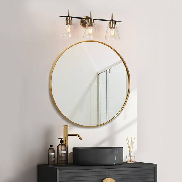 23 in. 3-Light Brushed Brass Vanity Light with Seeded Glass Shade