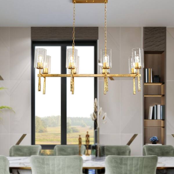 8-Light Vintage Goldleaf Linear Chandelier for Kitchen Island with Clear Glass Shades