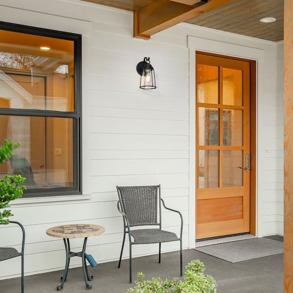 9.1 in. Black Bell Farmhouse 1-Light Outdoor Hardwired Wall Lantern Sconce with No Bulbs Included for Patio and Porch