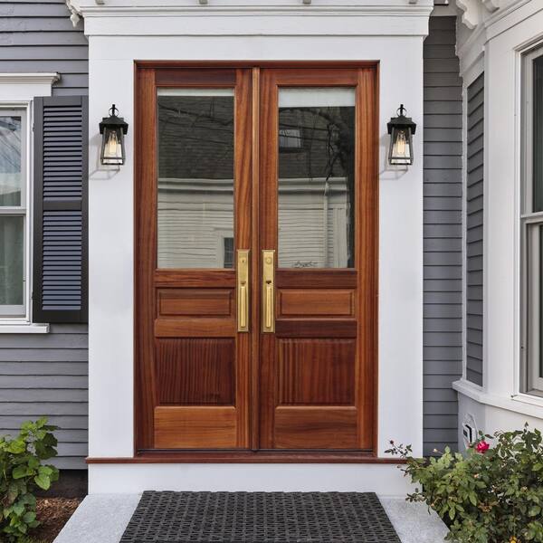 Farmhouse Cage Black Outdoor Wall Light 1-Light Industrial Outdoor Wall Sconce Light with Seeded Glass Shade 1-Pack