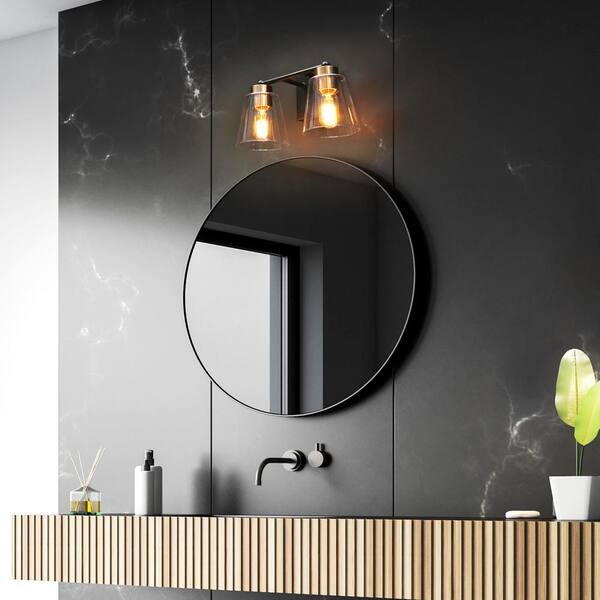 Modern Bell Bathroom Vanity Light 2-Light Black and Brass Wall Sconce Light with Clear Glass Shades