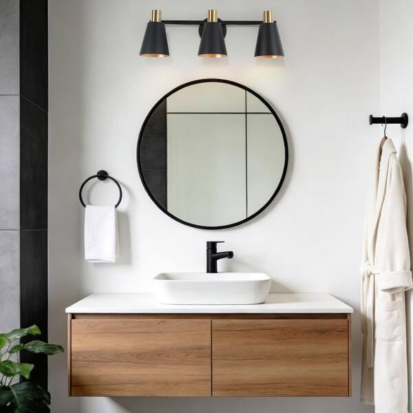Modern Black Bathroom Vanity Light, 22 in. 3-Light Transitional Gold Bell Wall Sconce with Bathroom Four-Piece Suite