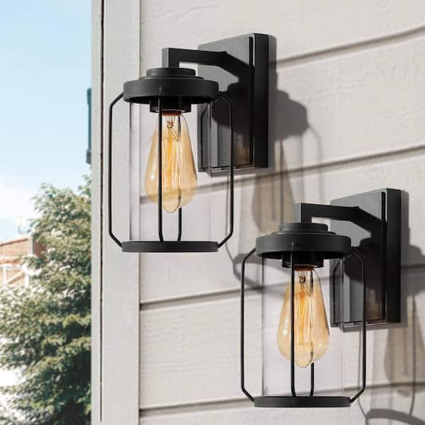 Modern Black Medium Outdoor Light Fixture, 1-Light Wall Lantern Sconce Light with Clear Glass (2-Pack) for Parking Area