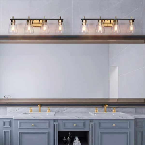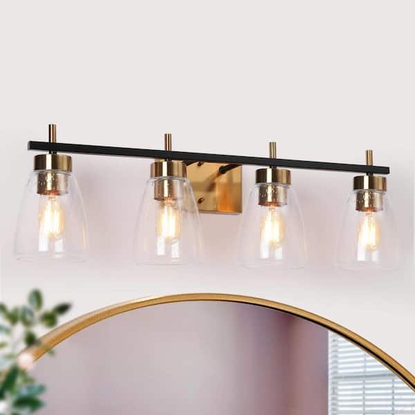 Modern Linear Black Vanity Light, 29 in. 4-Light Farmhouse Bathroom Gold Bell Wall Sconce