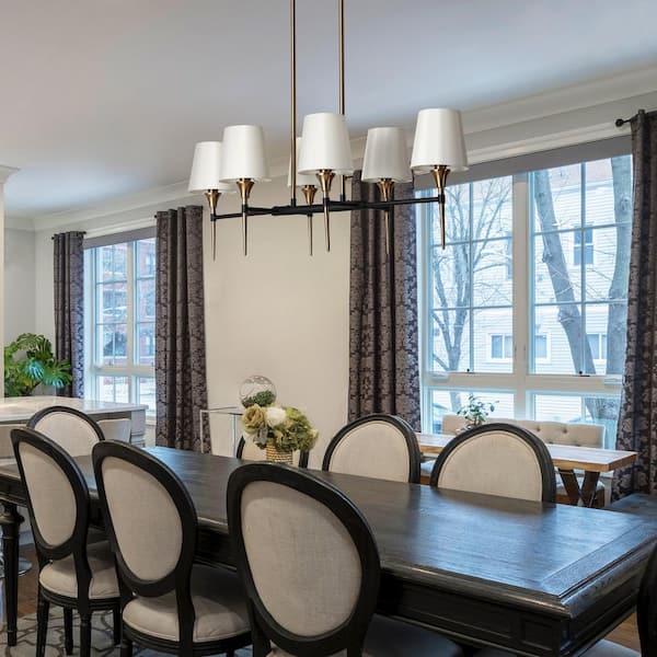 Modern Mid-century 6-Light Brass Linear Kitchen Island Chandelier with Fabric Shades Traditional Black Dining Room Light