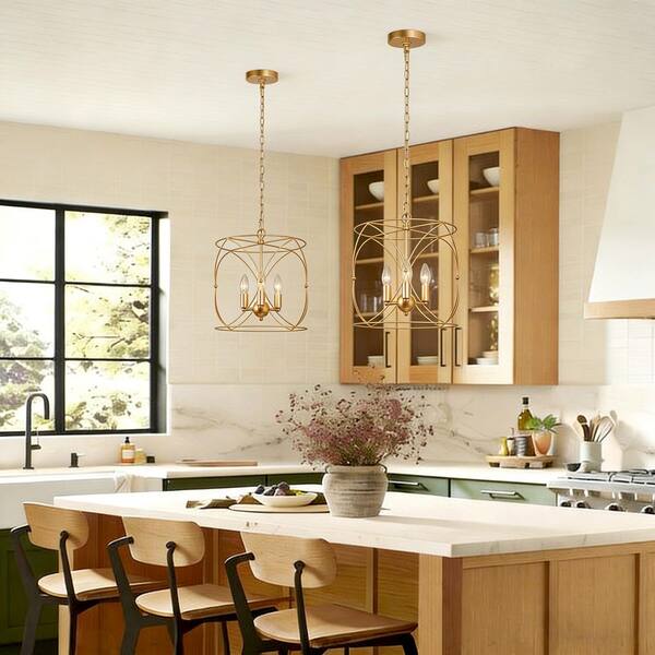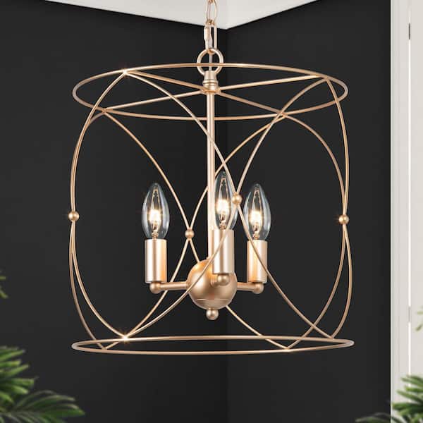 Transitional Dining Room Drum Chandelier 3-Light Brass Gold Mid-Century Cylinder Hanging Pendant Light for Living Room