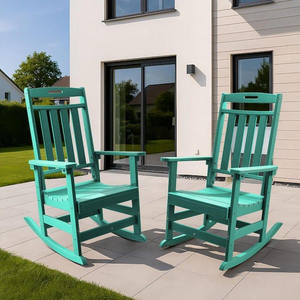 Aruba Blue HDPE Plastic Outdoor Rocking Chair, Porch Deck Rocker, 2 Pack