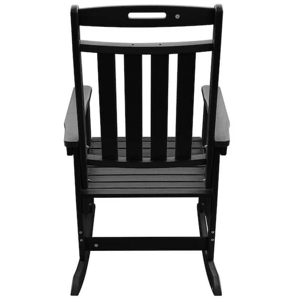 Black HDPE Plastic Outdoor Rocking Chair, Porch Deck Rocker