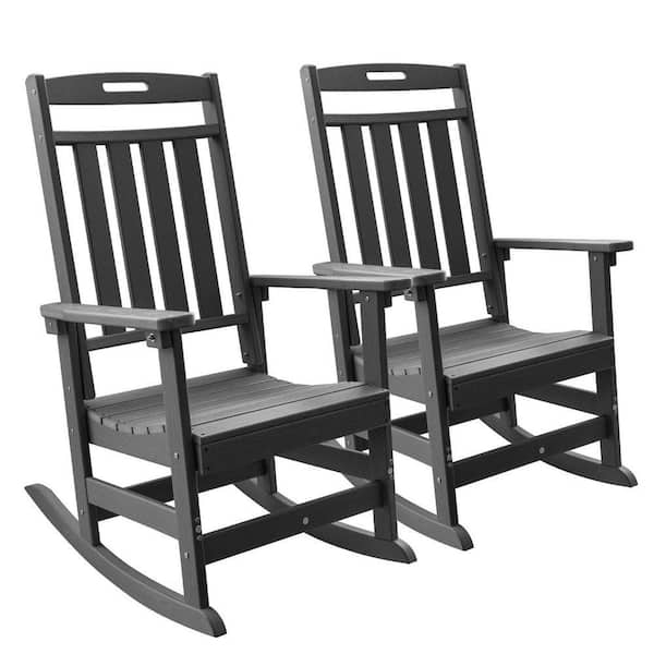 Grey HDPE Plastic Outdoor Rocking Chair, Porch Deck Rocker, 2 Pack