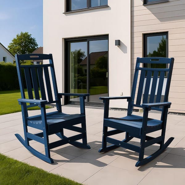 Navy Blue HDPE Plastic Outdoor Rocking Chair, Porch Deck Rocker, 2 Pack