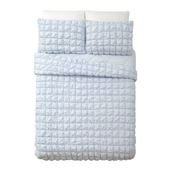 Dreamy Clouds 3-Piece Blue Puffy Microfiber Full/Queen Quilt Set