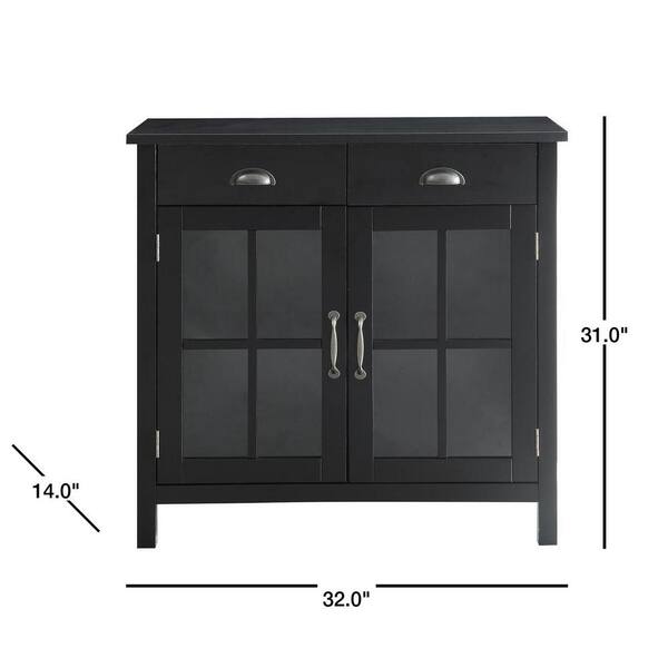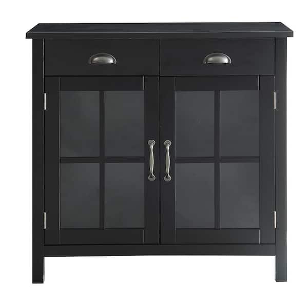 Olivia Black Accent Cabinet, 2-Glass Doors and 2-Drawers