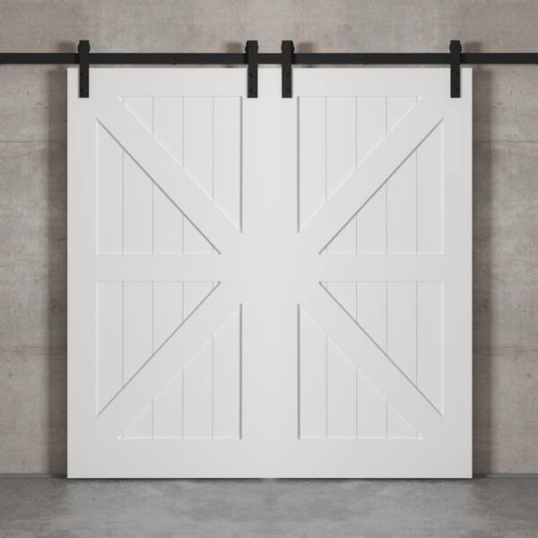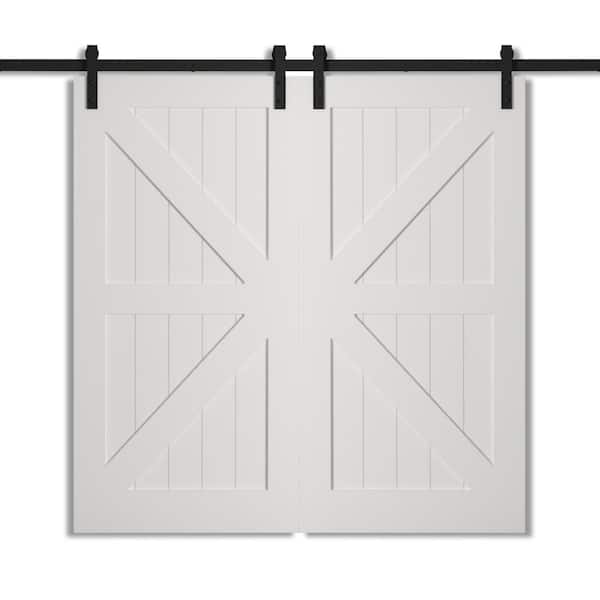 40 in. x 83 in. Manhattan Modern White Double Barn Door with Hardware Kit