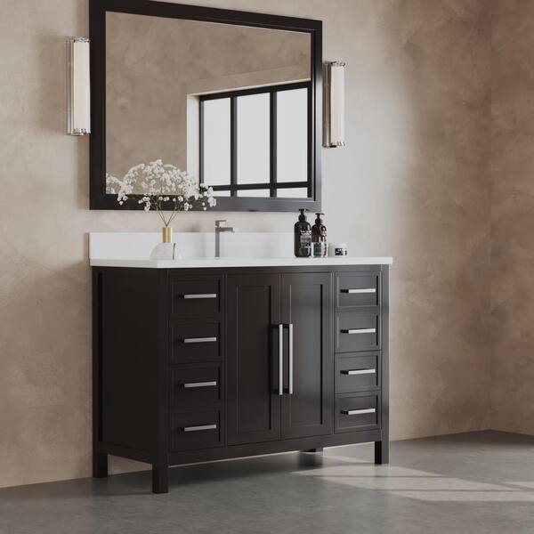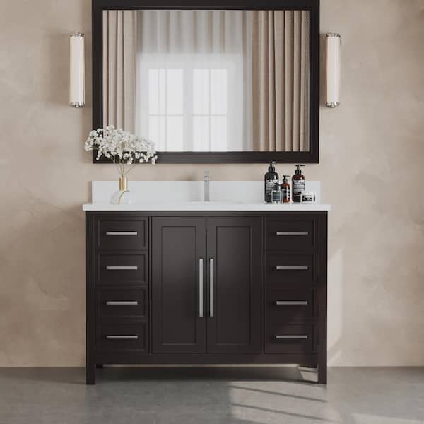 Acadian 48 in. W x 22 in. D x 35 in. H Double Sink Bath Vanity in Espresso with White Quartz Top and Mirrors