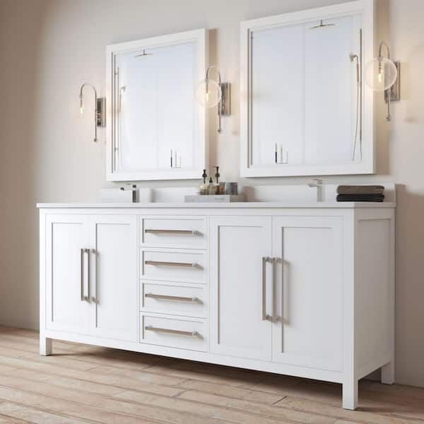 Acadian 72 in. W x 22 in. D x 36 in. H White Double Sink Bath Vanity with White Quartz Counter Top and Basin