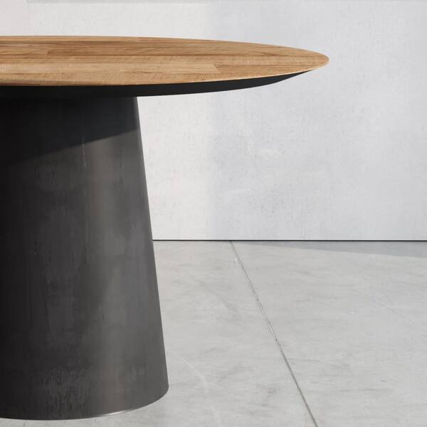 Atelier Solid Wood Top, 51 in. Width Cone Shaped Pedestal, Natural Color Finish Round Dining Table (4-Seaters)