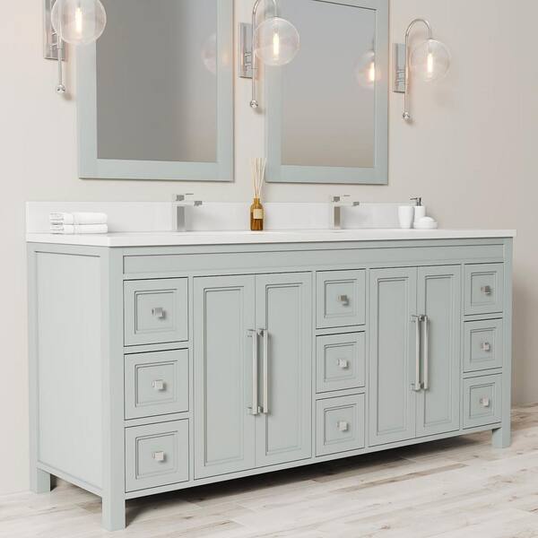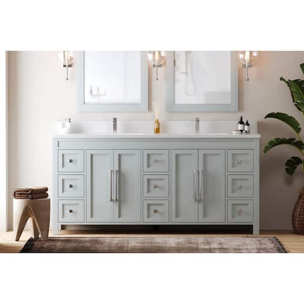 Bienville 75 in. W x 22 in. D x 33.5 in. H Double Bath Vanity in Grey with White Quartz Counter Top with White Basin