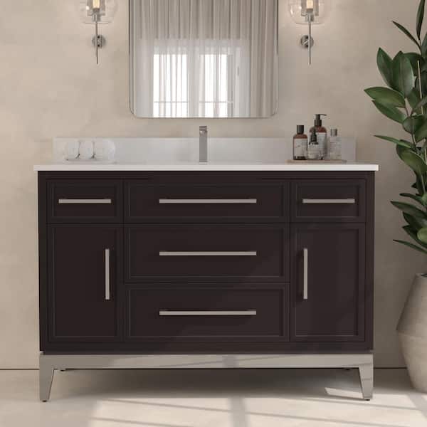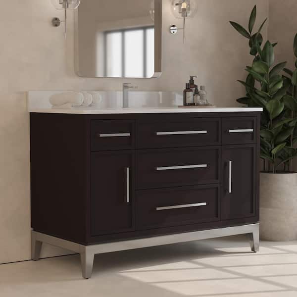Burlington 48 in. W x 22 in. D x 33.5 in. H Single Bath Vanity in Espresso with White Quartz Counter Top and Basin