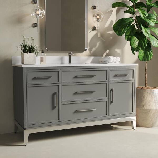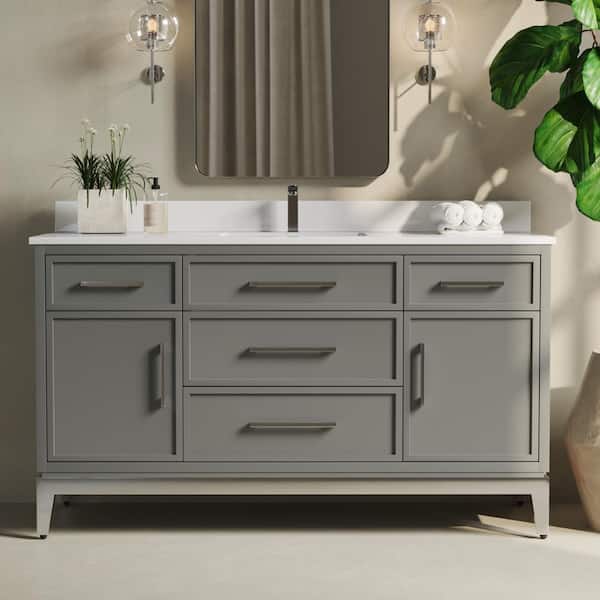 Burlington 60 in. W x 22 in. D x 33.5 in. H Single Bath Vanity in Gray with White Quartz Counter Top with Basin
