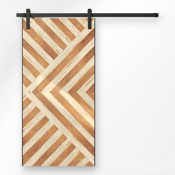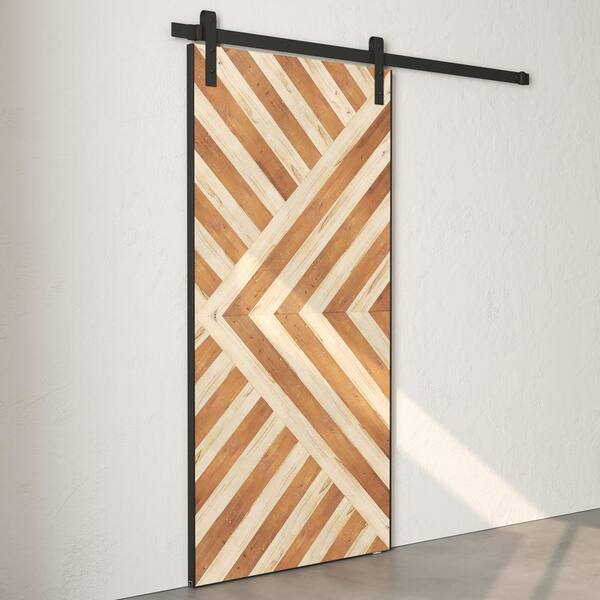 Custom Stained 80 in. x 35 in. Malibu, Enigma White, Reclaimed Wood, Sliding Barn Door with Hardware Kit