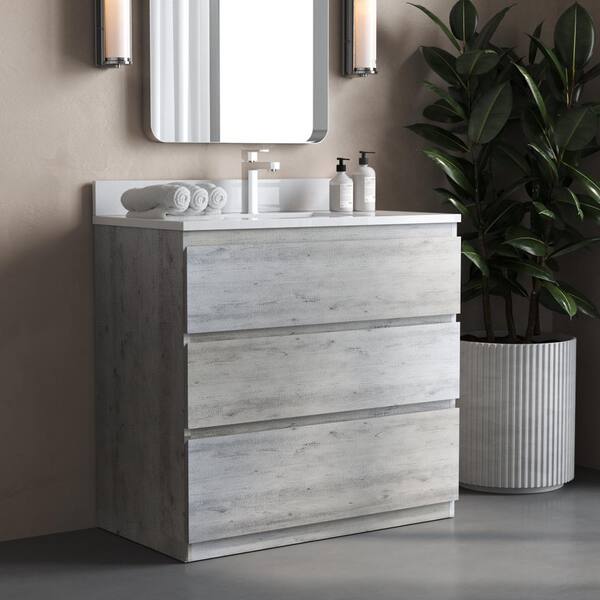 Vamo 36in. x 20in. Solid White Countertop Single Vanity in Rustic Gray
