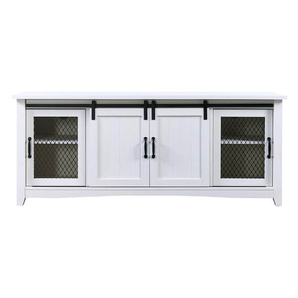 Aurora 61 in. White TV Stand with 2-Adjustable Panels Barn-Style Doors Fits TV's up to 55 in.