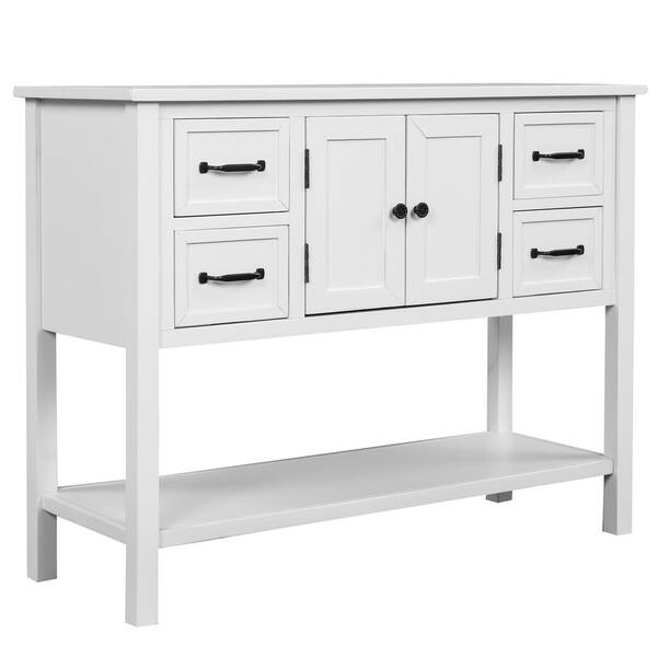 Perry 43 in. White Modern Console Table with Drawers, Cabinet and Shelf